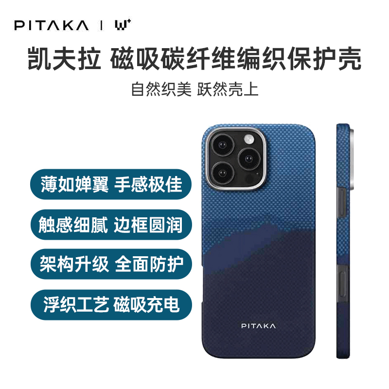 PITAKA 超薄凯夫拉 iPhone 16 Pro 磁吸碳纤维日落月升编织系列保护壳 山 薄至0.88mm,轻至17.95g,还原裸机手感,升级安全感,全新升级“一体式按键”(仅日落款)