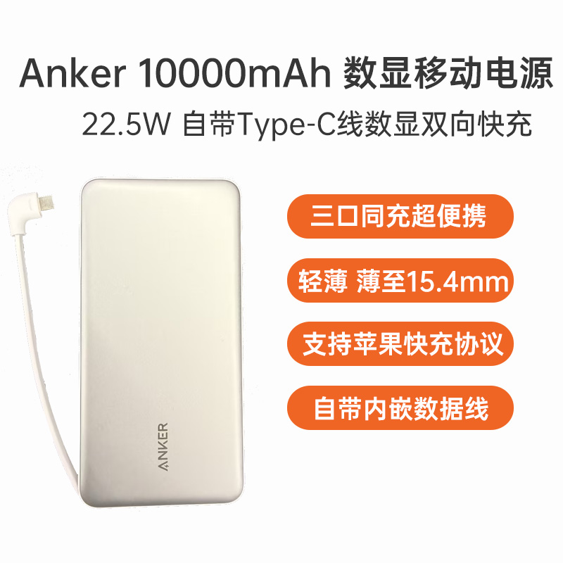 欧雷特 10000mAh 22.5W 自带Type-C线数显双向快充移动电源 月光银 符合国标3C认证,百元内1万毫安大容量快充移动电源,自带Type-C快充线,Mini机身,小如卡片,出行便携快速补电。