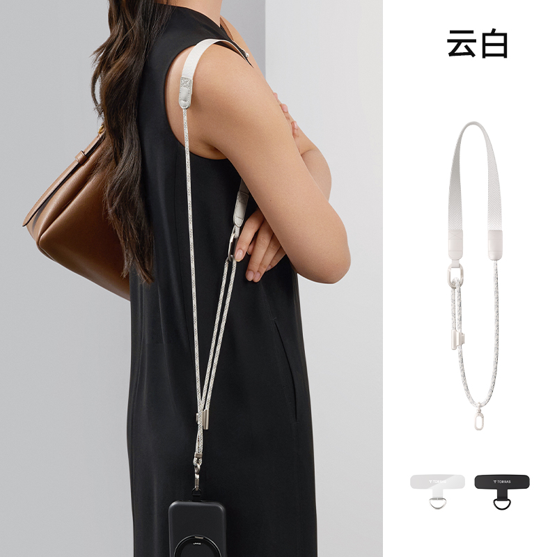 图拉斯 Ofeel 自由系列防丢手机挂绳 云白 设计细节涵盖肩带,挂绳整体仅39.9g;小羊皮纹布、细圆绳,无尾扣调节键、绳扣。