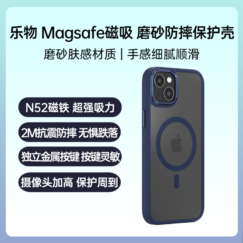 乐物 iPhone 15 Magsafe磁吸 磨砂防摔保护壳 蓝色 2米抗震防摔 无惧跌落,独立金属按键,摄像头屏幕加高保护