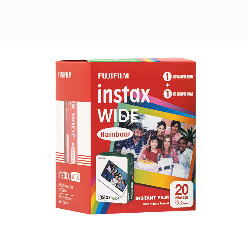 富士 instax WIDE 拍立得相纸 5寸 彩虹双包套装 立拍立得,记录精彩生活,经久不褪色