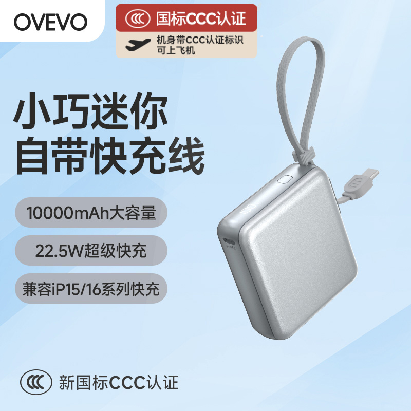 欧雷特 10000mAh 22.5W 自带Type-C线数显双向快充移动电源(OP-02)