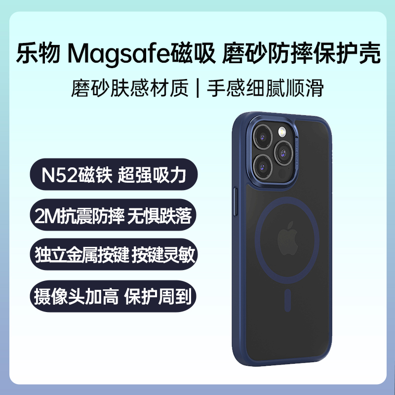 乐物 iPhone 15 Pro Magsafe磁吸 磨砂防摔保护壳 蓝色 2米抗震防摔 无惧跌落,独立金属按键,摄像头屏幕加高保护