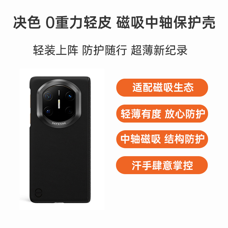 Defense决色 华为Mate X6 官方技术旋翼Pro腕带支架 翻盖手机壳 羽白 270°无极旋转,既是横竖超薄支架,又是旋转磁吸腕带,横竖屏支撑,手带握持,3大形态浑然一体。
