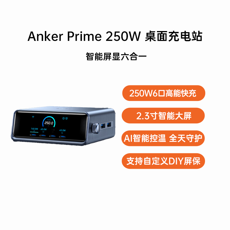 Anker Prime 250W智能屏显桌面充电站(A2345)