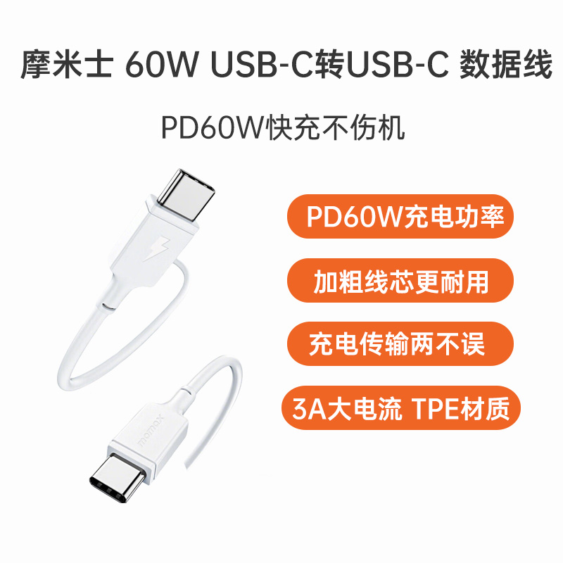 【适用iPhone 17系列】MOMAX 60W USB-C转USB-C 手机/平板/笔记本电脑 小白数据线 1m