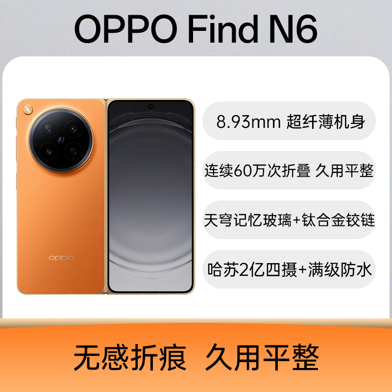 OPPO Find N6 全网通5G版 金橙 12GB+256GB 天穹记忆玻璃,新一代钛合金天穹铰链,连续 60 万次折叠,久用平整;全景自由窗,窗口自由调节,至多4窗同开;跨生态互联,无缝跨端,丝滑互联,手机、电脑、手表、平板都能连