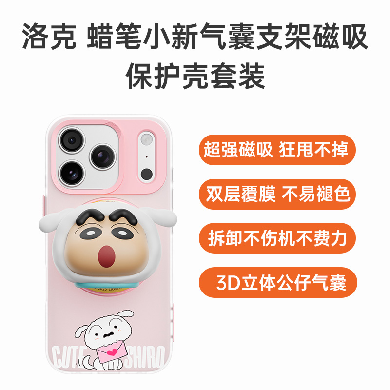 洛克 iPhone 17 Pro 印象旋立 蜡笔小新磁吸支架保护壳 露营探险 磁吸支点自由旋转,蜡笔小新正版授权,带壳照样快充,单手秒吸秒卸