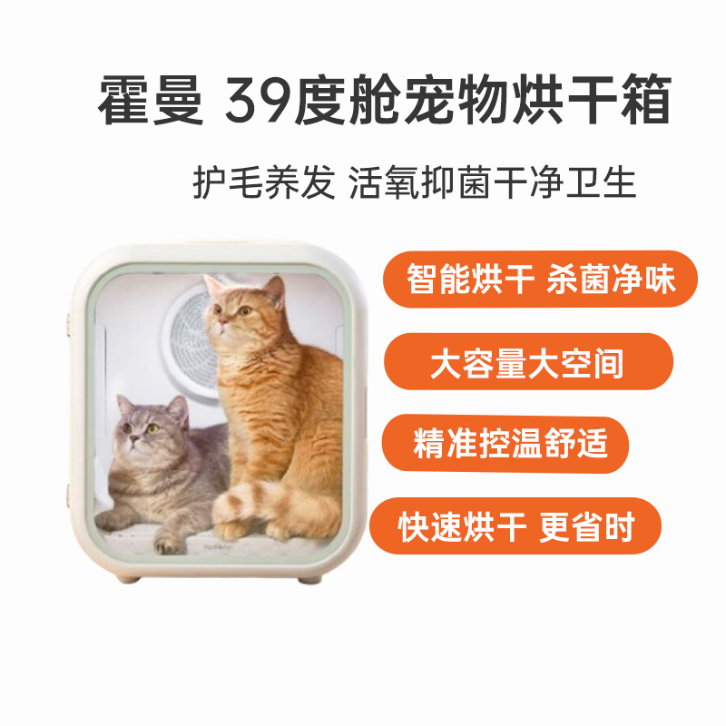 霍曼 39度舱烘干箱 50升 16-40°C ±1°C精准控温,运作声音低至40dB,35分钟快速烘干,消毒杀菌,冬夏猫窝