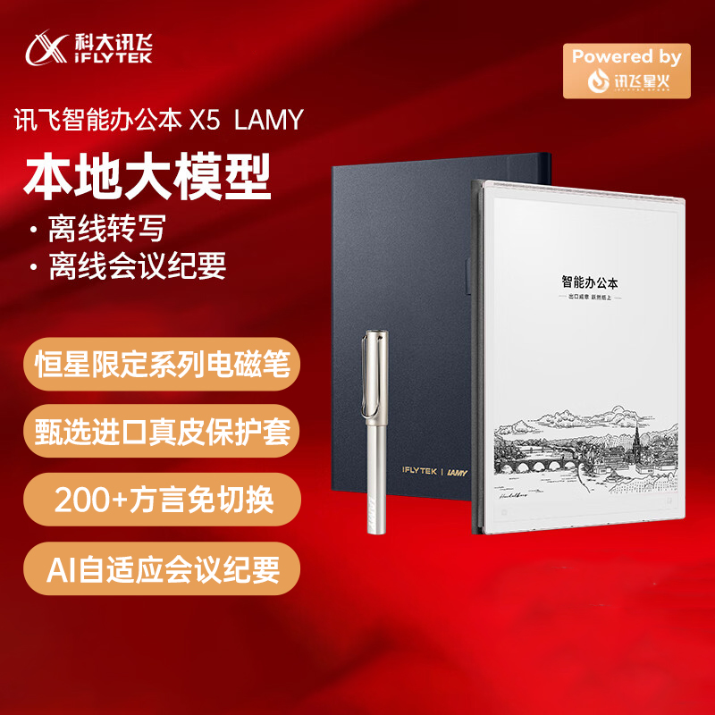 科大讯飞 智能办公本 Air 7.8英寸 深空灰(主机)+细格纹黑((素皮皮套) 98%语音转写准确率,快速生成会议纪要,口语稿书面化规整