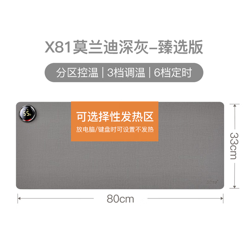 昕科 分区加热智能数显 暖桌鼠标垫X81 灰色 分区可控加热,数显智能开关,三档温度调节