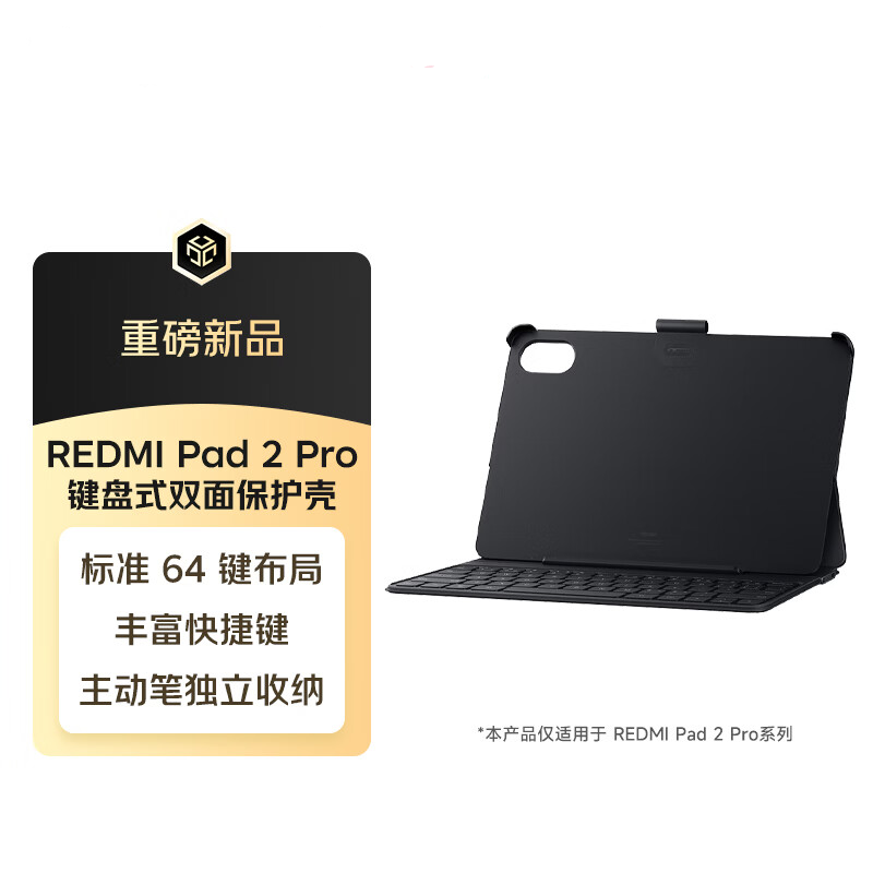 红米 Redmi Pad Pro 键盘式双面保护壳 黑色 主动笔独立收纳,760h 超长待机