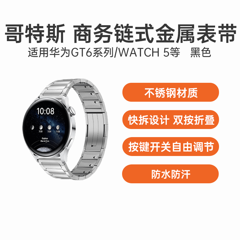 哥特斯 商务链式金属表带 适用华为GT 6系列/WATCH 5等