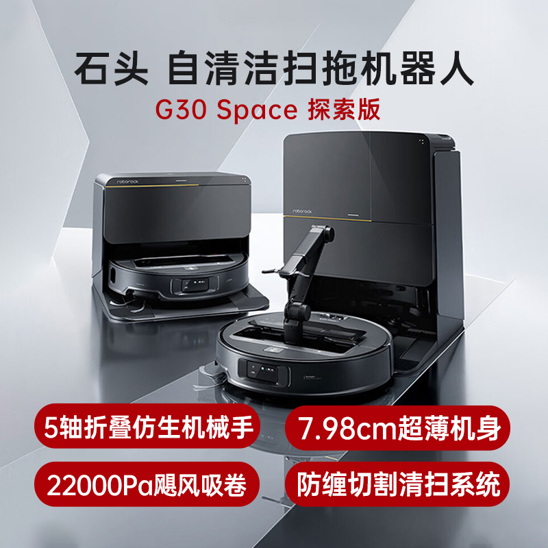 石头 扫地机器人 G30 Space 探索版 上下水版 行业首创,5轴折叠仿生机械手;石头星阵领航3.0,3组Tof全向感知;22000Pa飓风卷吸