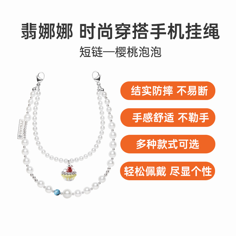PYNANA翡娜娜 时尚穿搭手机挂绳短链 樱桃泡泡 非遗级匠艺 日常吸睛利器