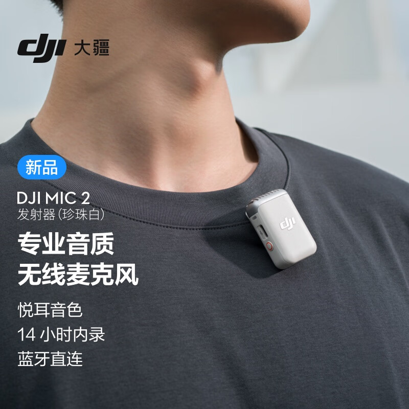 大疆 DJI Mic 2 发射器 珍珠白 14小时内录存储,智能降噪,纯净人声,蓝牙直连,快速高效