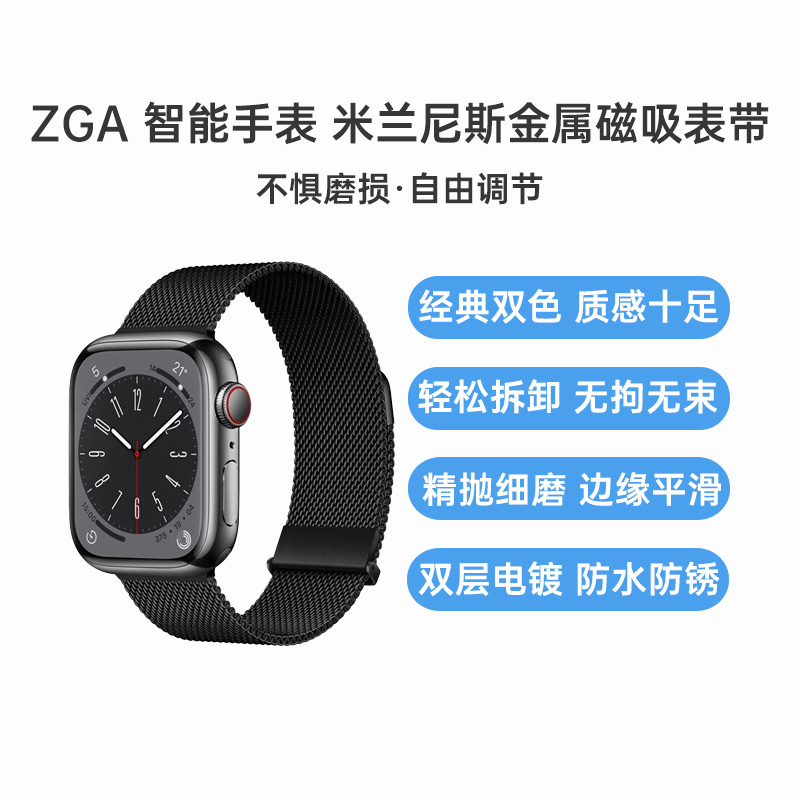 迪沃 米兰尼斯金属表带 适用AppleWatch苹果手表表带 深空黑 44/45/46/49mm适用 苹果手表通用,自动吸附表扣