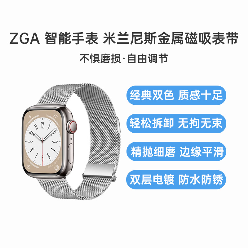 ZGA 华为/荣耀手表 米兰尼斯表带 适配华为GT 6系列/WATCH 5 银色 18mm 适配华为GT5系列/WATCH 5及其他表带规格为18mm与22mm的智能手表,金属编织无极尺寸调节
