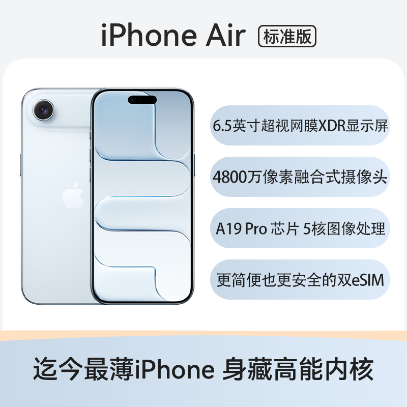 Apple iPhone Air 全网通5G版-不可享国补 天蓝色 256GB 标准版 该商品未拆封未激活,可正常享受新机质保服务;不与国家补贴和其他优惠叠加,每款数量有限,抢完即止!