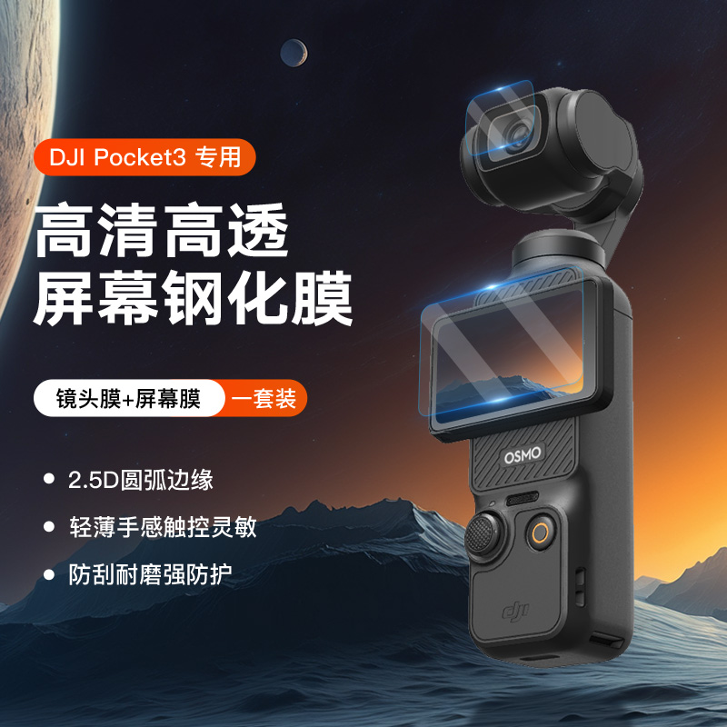 泰迅 Pocket 3 钢化膜套装 耐刮耐磕,2.5D 圆弧设计,原机开模更还原