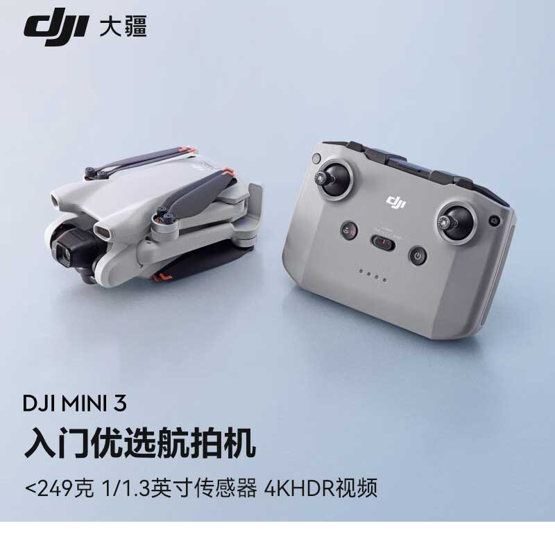 大疆 DJI Mini 3 普通遥控器版 【限时直降】无损竖拍,多种智能拍摄模式,最大抗风等级 5 级,4K HDR 品质影像,1/1.3 英寸传感器