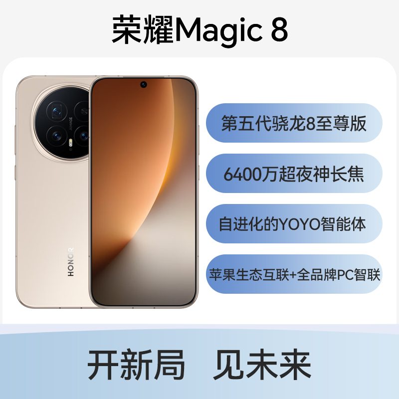 荣耀Magic8 全网通5G版 旭日金 16GB+1TB  第五代骁龙8至尊版,428万跑分定义性能新高度;6400万超夜神长焦,夜景大片一拍即得;自进化的YOYO智能体;全新AI影像,白天黑夜都出大片;新一代青海湖电池+绿洲护眼屏;苹果生态互联+全品牌PC智联